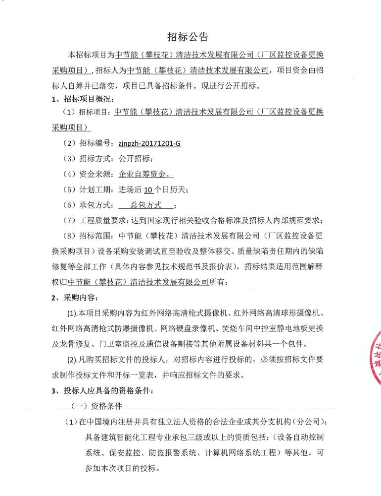 廠區(qū)監(jiān)控設備更換采購項目招標公示