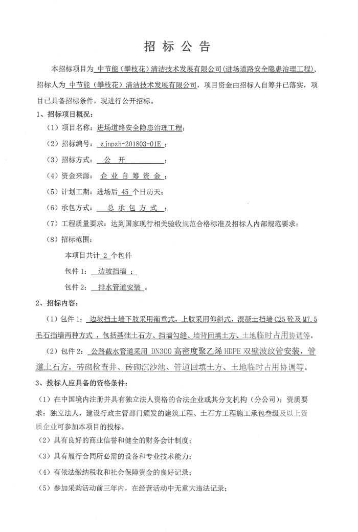 進(jìn)場(chǎng)道路安全隱患治理工程招標(biāo)公告