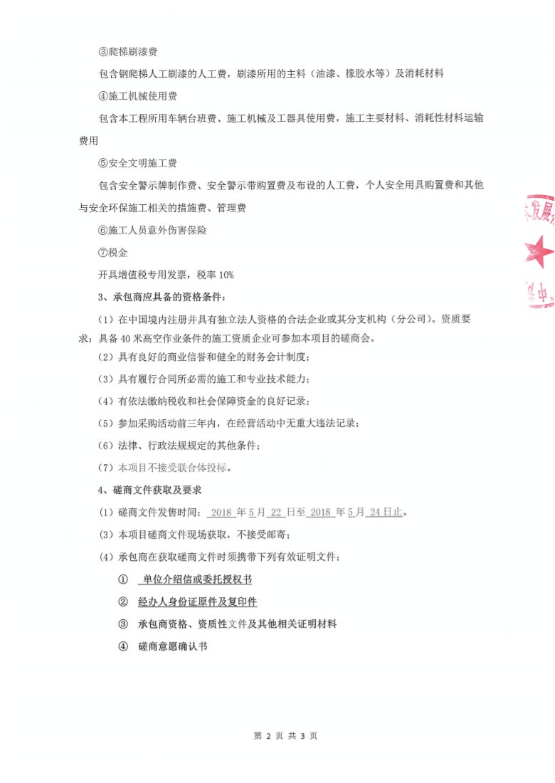 焚燒車間高煙囪爬梯安全性檢查及防腐工程競(jìng)爭(zhēng)性磋商公告