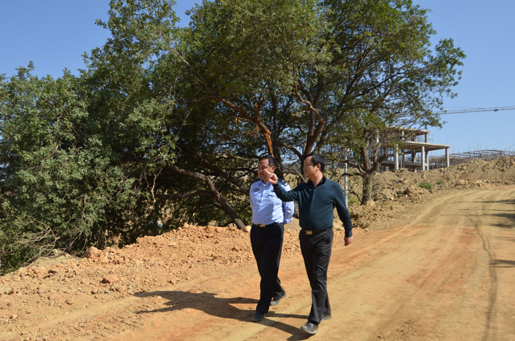 2013年3月14日袁總帶領(lǐng)恒德公司全體員工檢查工地,袁杰總經(jīng)理對(duì)項(xiàng)目生活區(qū)、廠區(qū)的生態(tài)建設(shè)作出嚴(yán)格要求,對(duì)原有樹木保護(hù)、綠化、排水工作進(jìn)行詳細(xì)布置落實(shí)。